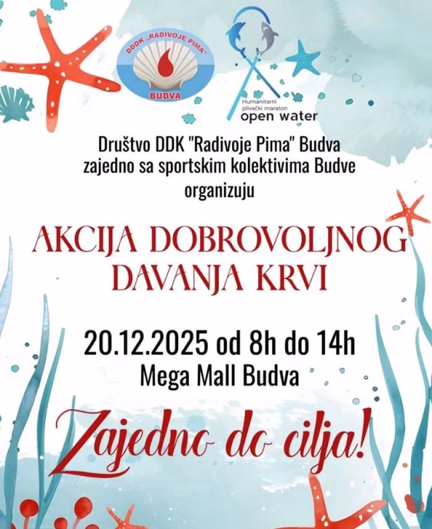 "Stoga vas pozivamo da uzmete učešće u istoj i da na kraju uspješne sportske godine i zapaženih rezultata pokažete i svoju humanost. Akcija nosi naziv "ZAJEDNO DO CILJA", a održaće se u subotu, 20.12.2025. u periodu od 08 do 14 časova, u holu TC "Mega Mall" u Budvi.U nadi da ćete nam se pridružiti i stići sa nama zajedno do cilja zahvaljujemo vam se i srdačno vas pozdravljamo", poručuju organizatori.