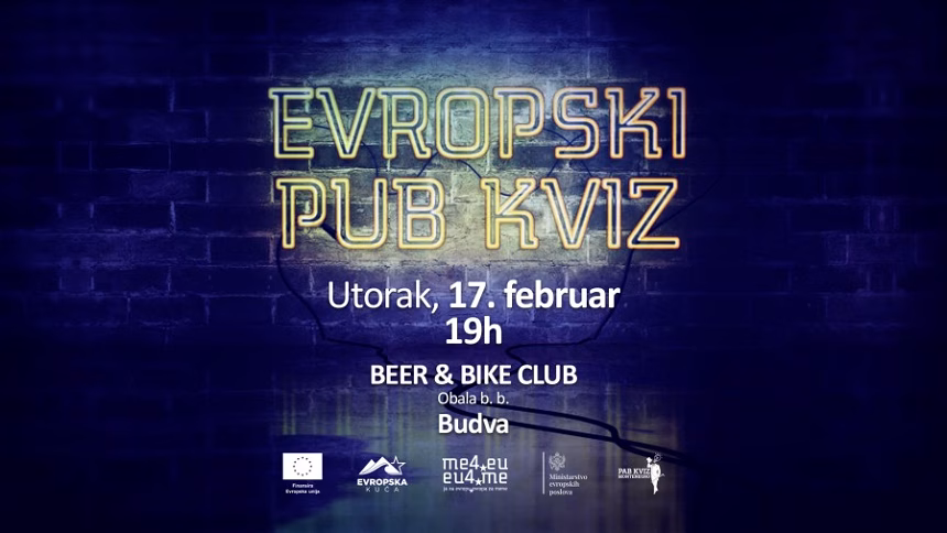 Evropski pub kviz organizuju Ministarstvo evropskih poslova i Delegacija Evropske unije u Crnoj Gori, kroz projekte EU4ME i Evropska kuća, u saradnji sa autorom kviza Zoranom Miljanićem.