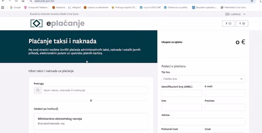 Građani i pravna lica od sada mogu administrativne takse i naknade za usluge Uprave za nekretnine plaćati elektronski, putem državnog portala ePlaćanje (eplacanje.gov.me), i to bez provizije, saopšteno je iz Uprave.
