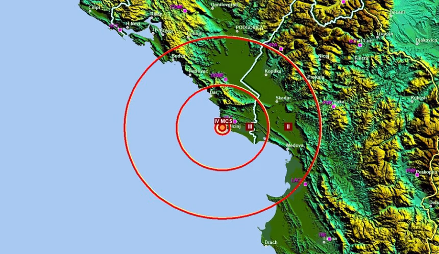 Slabiji zemljotres jačine 2,9 stepeni Rihterova skale reagistrovan je u 15.35 sati zapadno od Ulcinja.