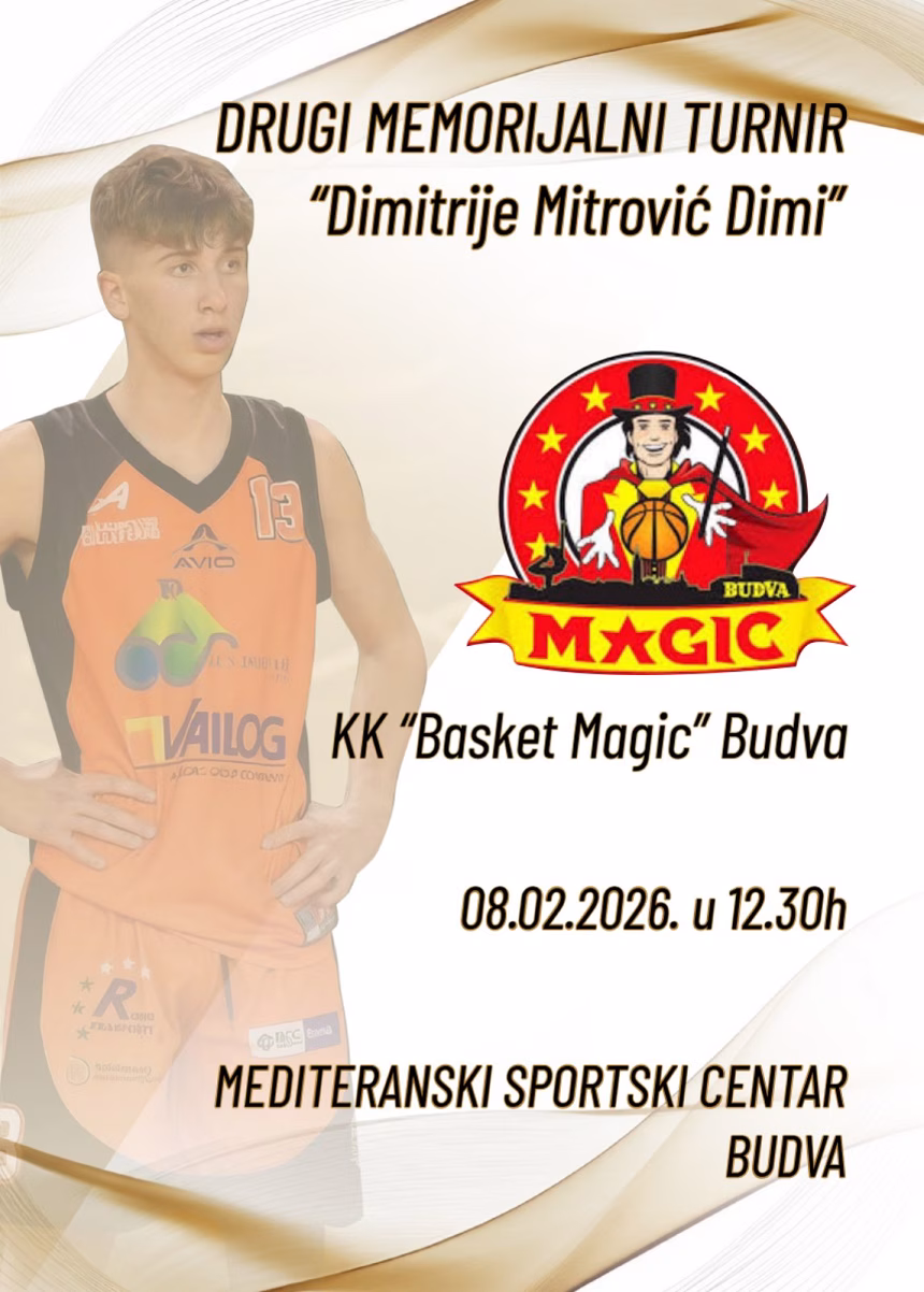 U nedelju, 8. februara, sa početkom u 12:30 časova, Mediteranski sportski centar u Budvi biće domaćin Drugog memorijalnog turnira „Dimitrije Mitrović – Dimi“. Turnir, koji organizuje Košarkaški klub „Magic Basket“, posvećen je očuvanju sjećanja na tragično nastradalog mladog košarkaša i člana kluba.