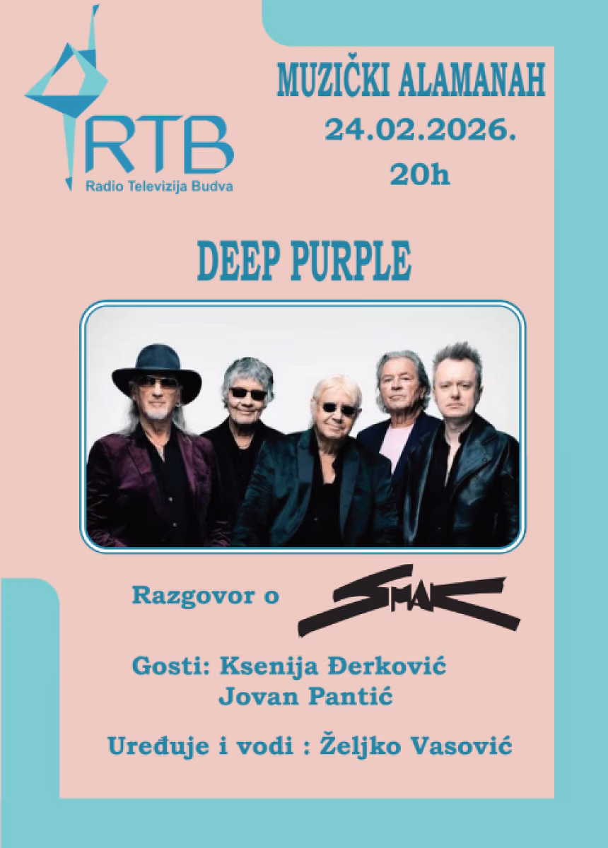 Ljubitelji dobrog zvuka večeras od 20 časova na talasima Radio Budve mogu uživati u novom izdanju emisije „Muzički almanah“. Tema večerašnjeg programa biće britanski giganti Deep Purple, dok će poseban osvrt biti posvećen kultnoj grupi Smak povodom promocije njihove monografije u našem gradu.