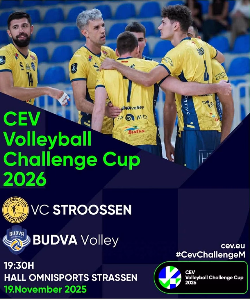 Odbojkaši Budve danas u Luksemburgu igraju revanš meč CEV Čelendž kupa protiv ekipe Štrusena. Budvani su u ovu ključnu utakmicu za plasman u šesnaestinu finala ušli sa prednošću od 3:2 ostvarenom u prvom, izuzetno dramatičnom meču odigranom u Mediteranskom sportskom centru.
