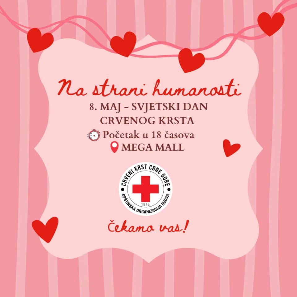 Crveni krst Budva poziva građane svih uzrasta da danas, 8. maja u 18 časova u Mega Mall-u, zajedno obilježe Svjetski dan Crvenog krsta/Polumjeseca kroz inspirativan i raznovrstan program.