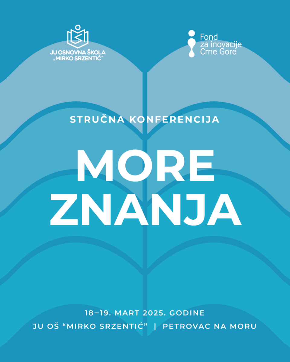 Stručna konferencija “More znanja” će 18. i 19. marta godine okupiti više od 40 učesnika iz Crne Gore, Srbije i Bosne i Hercegovine, koji su posvećeni unaprijeđenju kvaliteta nastave i razvoju savremenih obrazovnih pristupa. Fokus događaja je na razmijeni inovativnih nastavnih praksi i promociji kreativnih metoda u obrazovanju, kroz prezentacije, panel diskusije i primjere dobre prakse.