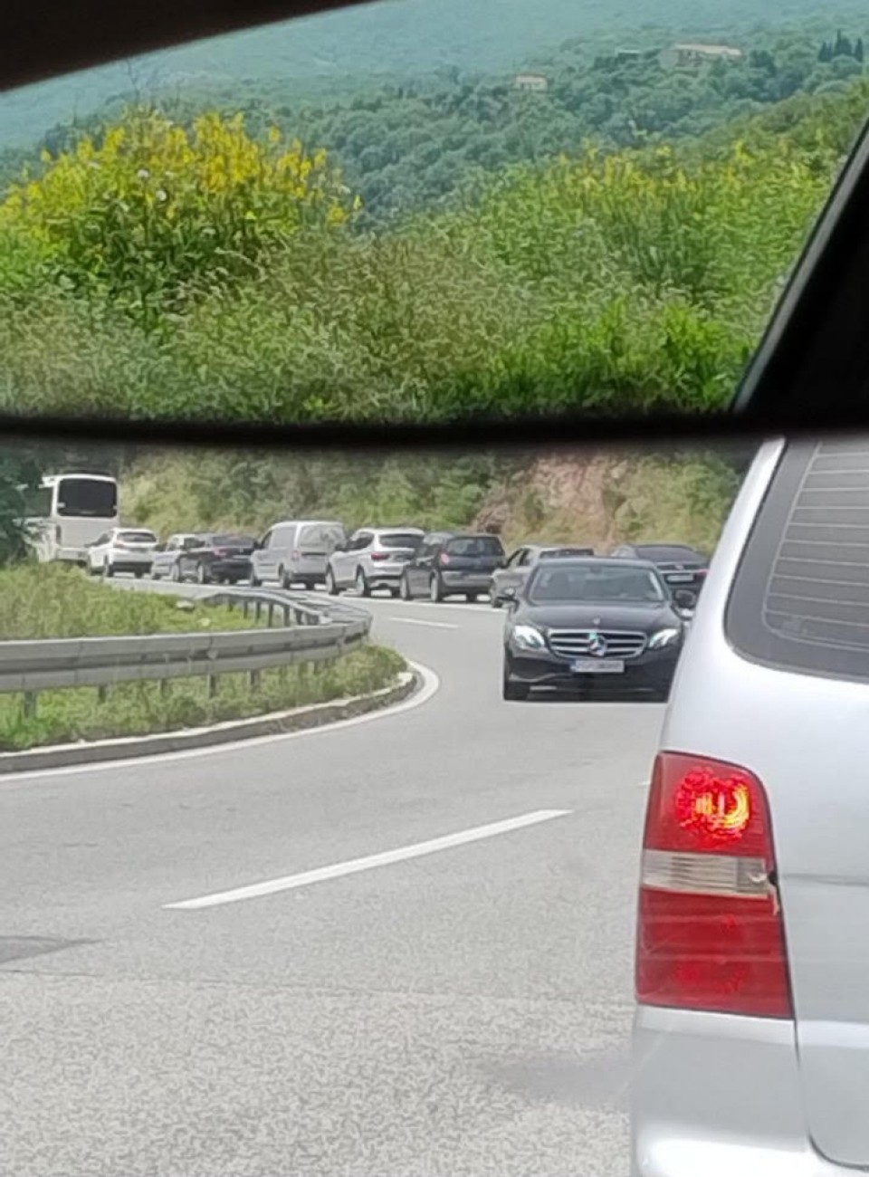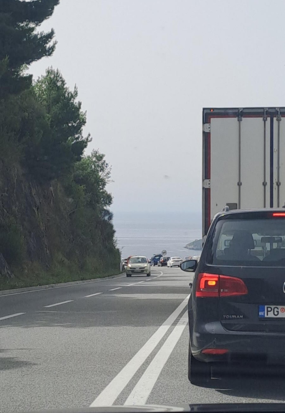 Na dionici puta od naselja Markovići do kružnog toka na ulazu u Budvu danas su zabilježene velike kolone vozila.