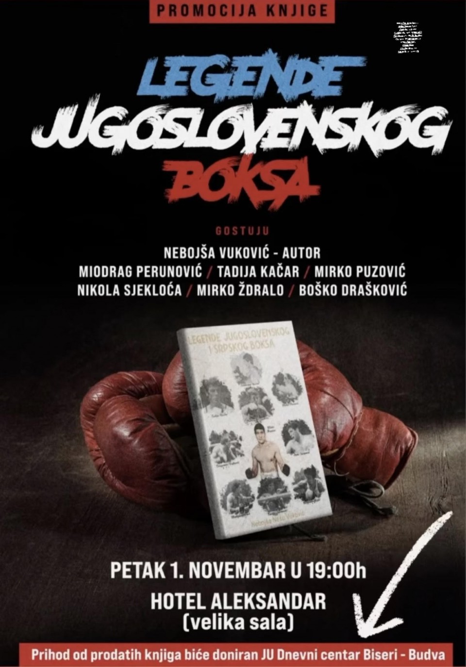 U petak, 1. novembra, sa početkom u 19:00 sati, u velikoj sali hotela Aleksandar u Budvi biće održana promocija knjige "Legende jugoslovenskog boksa."