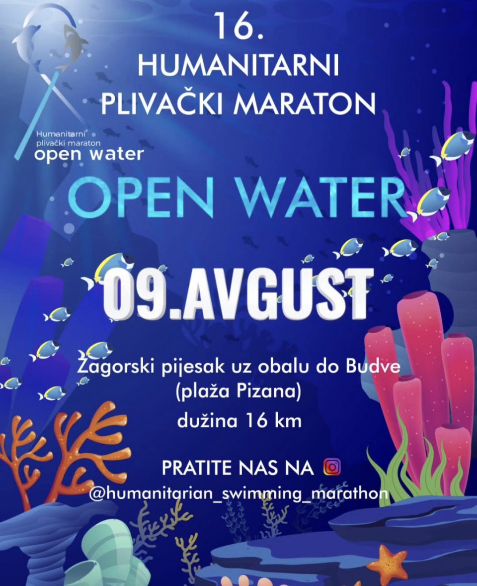 S.R.D. OPEN WATER organizuje 16. tradicionalni humanitarni plivački maraton, koji se ove godine održava za pomoć dvoje djece sa posebnim potrebama – dječaku Alenku Muratoviću iz Budve i djevojčici Tamari Ceranić iz Mojkovca.