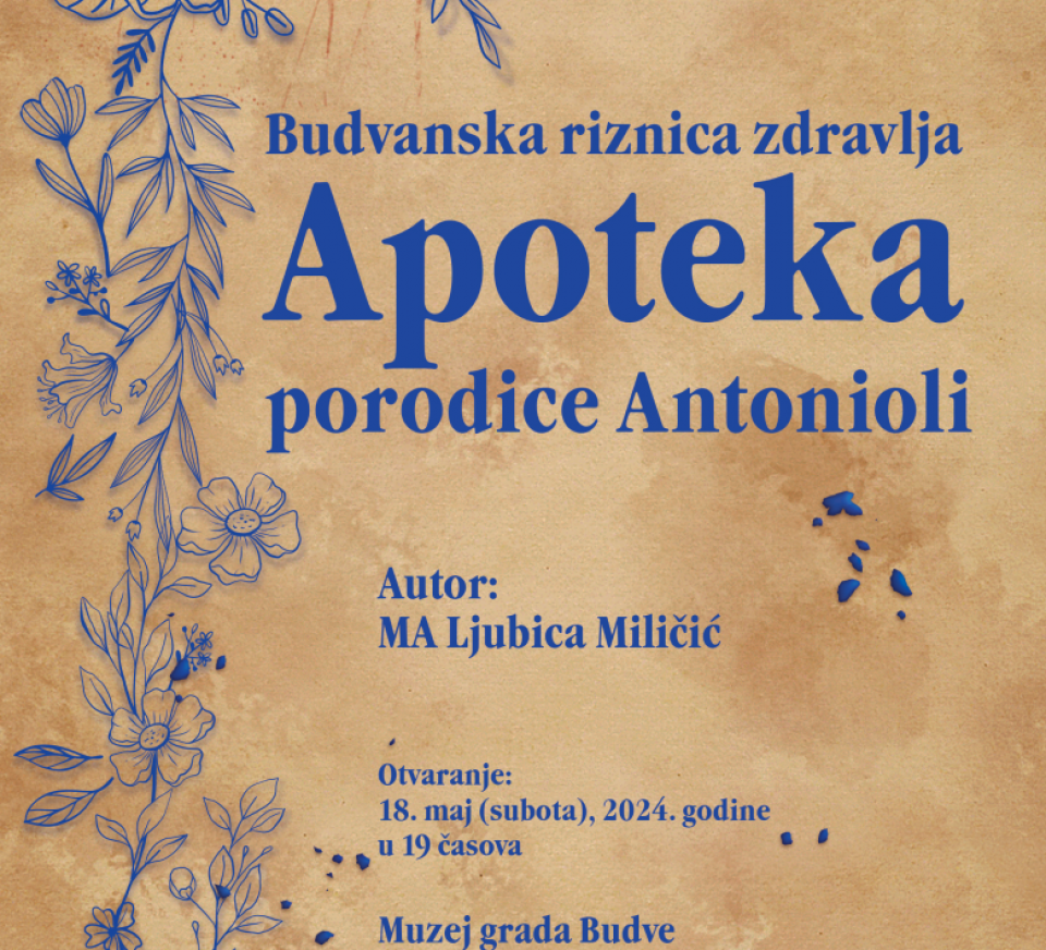 JU Muzeji i galerije Budve, Muzej grada Budve organizuje izložbu „Budvanska riznica zdravlja – apoteka porodice Antonioliˮ povodom međunarodnog Dana muzeja autora MA Ljubica Miličić. Izložba će biti otvorena večeras u 19 časova u Muzeju grada Budve, Stari grad, ulica Petra I Petrovića 11.