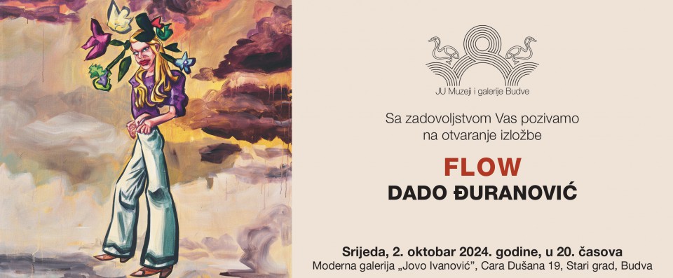 U organizaciji JU Muzeji i galerije Budve u srijedu, 2. oktobra 2024. godine u 20 časova u Modernoj galeriji „Jovo Ivanović” biti otvorena izložba „Flow” Dada Đuranovića. Kustos izložbe je Saša Radišić, viši kustos.