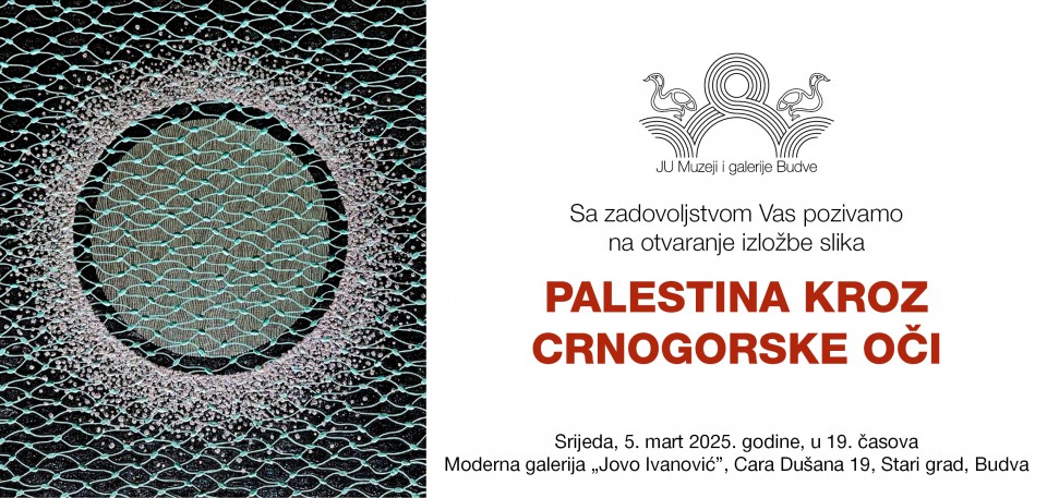 Sjutra sa početkom u 19h u Modernoj galeriji „Jovo Ivanović” u Starom gradu u Budvi biti otvorena izložba radova crnogorskih umjetnika pod nazivom „Palestina kroz crnogorske oči”.