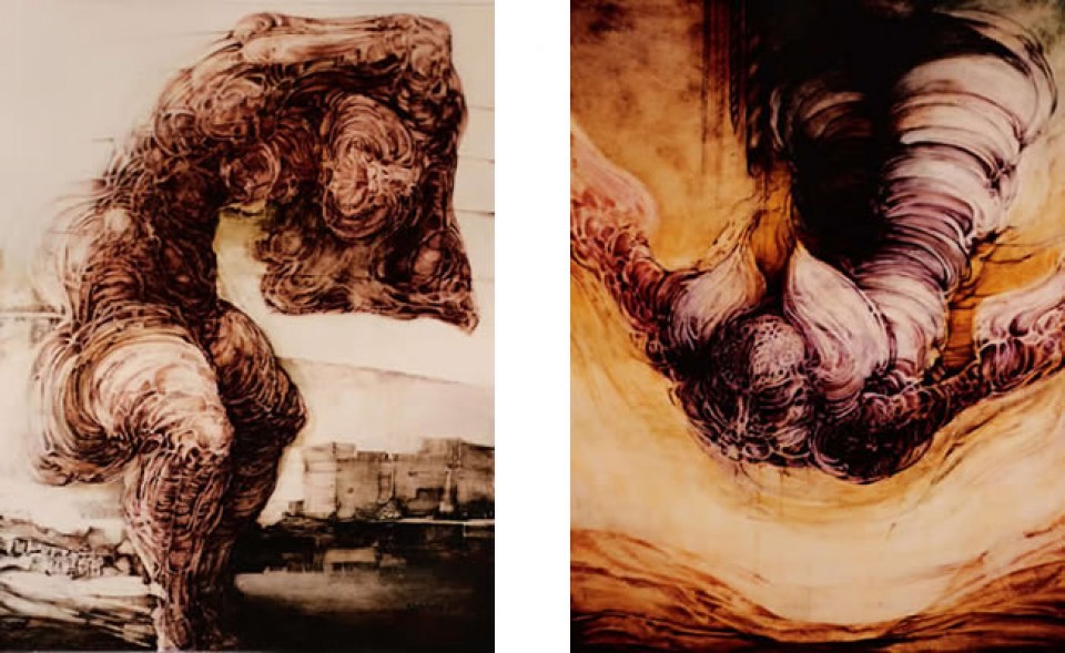 Slobodan-Bobo Slovinić nas, kroz svoj remek-djelo Ljepotice zavodnice, čudaci (1973-1977), uvodi u fascinantno putovanje kroz dubine ljudske duše i društvenih struktura. Ovaj ciklus slika, smješten unutar šireg konteksta njegovog umjetničkog stvaralaštva, postaje ekspresionistički dijalog između mračnih i svjetlucavih aspekata čovječanstva. Iz početnog “Samonikla u Grču“, đe se susrećemo sa borbom žene i patnjama, preko “Uklete Puritanke“ koja nas suočava sa društvenim ograničenjima, “Madoninog Preobražaja“ koji prenosi mistične vizije, do “Otuđene Done“ koja nam pokazuje ljudsku otuđenost, Stravični Ciklus postaje kaleidoskop emocija i različitosti. Slovinićev izraz kroz ovaj ciklus transcendirao je granice klasičnih umjetničkih reprezentacija, otvarajući vrata ka univerzalnim temama i dubljim pitanjima života. Ekspresionistički pristup, dinamičnost pokreta četkice i paleta boja postali su ne samo sredstvo izraza, već i poziv na razmišljanje. Kroz likovnu simfoniju Ljepotice zavodnice, čudaci (1973-1977), Slovinić nas vodi na putovanje kroz ljudsku suštinu, pozivajući nas da se suočimo sa mračnim stranama naše egzistencije, ali i da pronađemo svjetlost i nadu u sredini tame. Svaka slika postaje stranica u knjizi ljudskih priča, a ciklus kao cjelina postaje likovni ep o čovječanstvu. Ciklus Ljepotice zavodnice, čudaci (1973-1977) nije samo galerija umjetničkih djela; to je odraz umjetnikove vizije svijeta, duboko utemeljene u ljudskim emocijama i iskustvima.