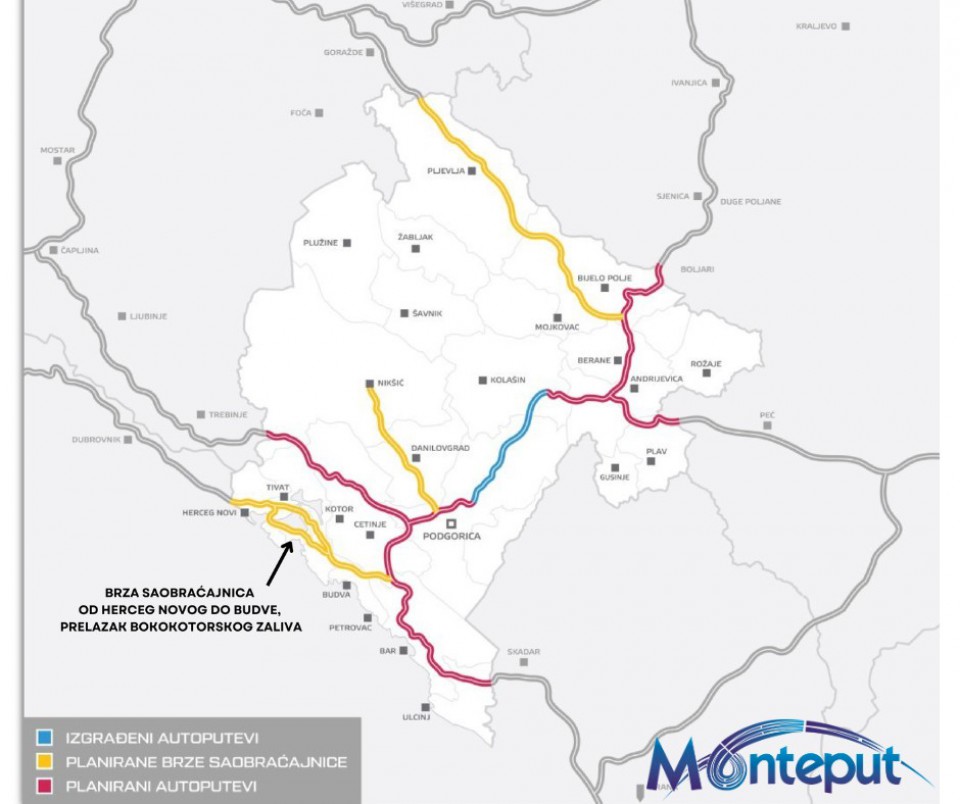 Monteput d.o.o. je raspisao javni poziv za izradu idejnih rješenja za dionicu brze saobraćajnice od Herceg Novog do Budve, prelazak preko Bokokotorskog zaliva.