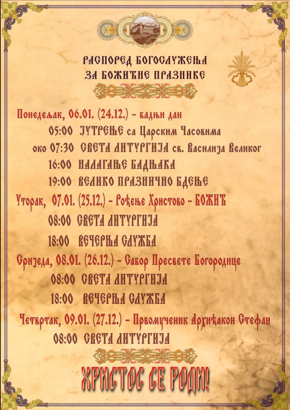 Pogledajte raspored bogosluženja za Badnji dan i Božić i raspored nalaganja badnjaka u crkvama i manastirima.