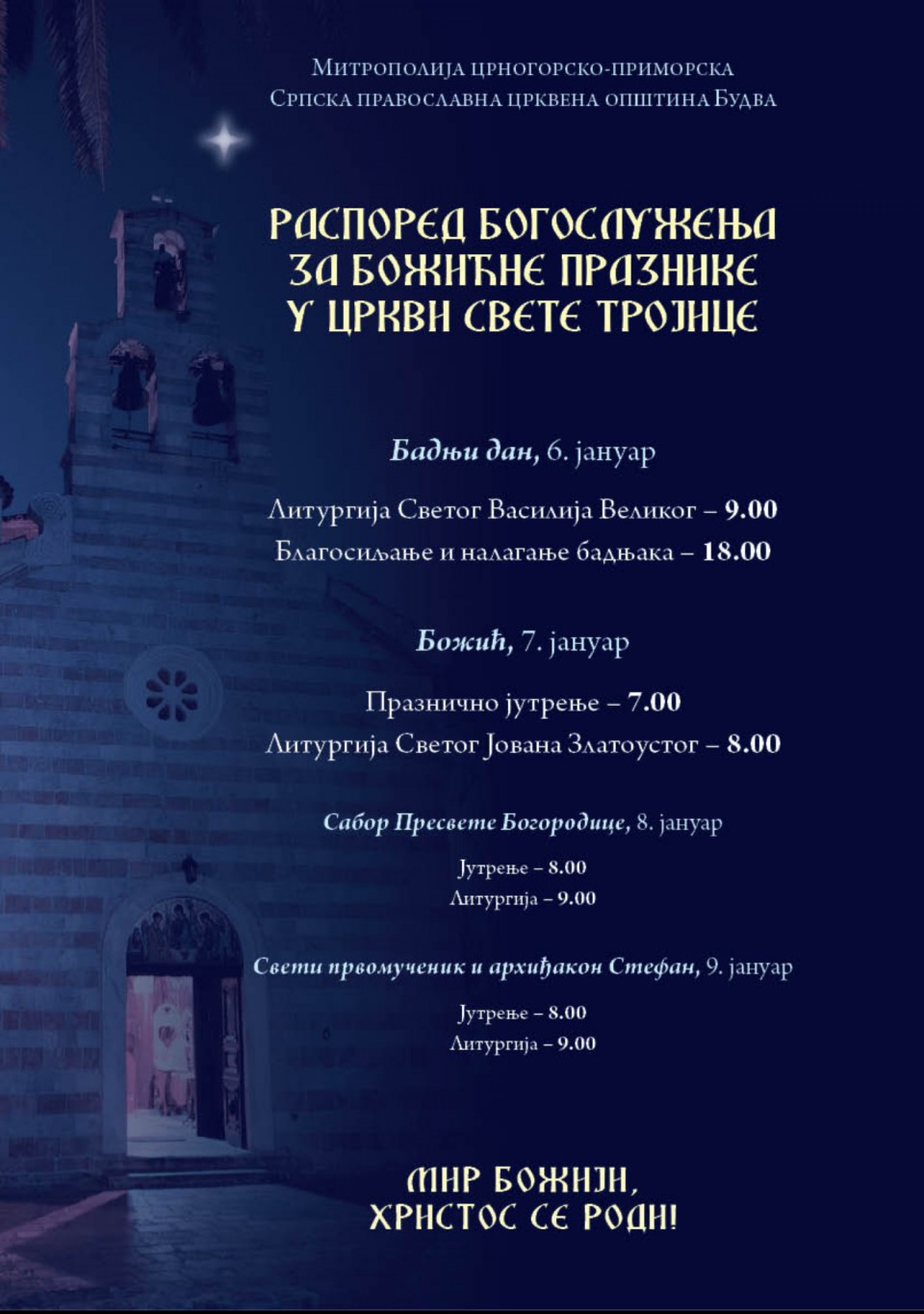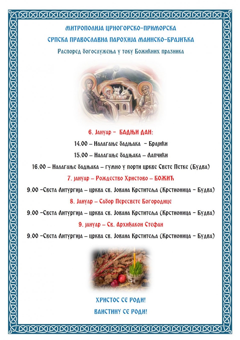 Raspored bogosluženja i nalaganja badnjaka u Budvi