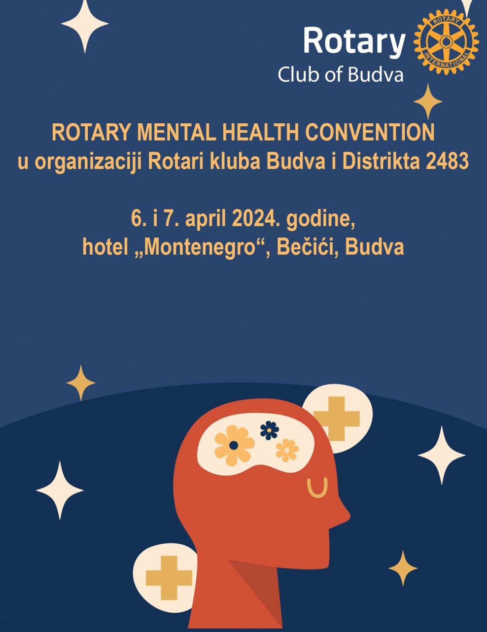 Prateći ideju posvećenosti tekuće rotarijanske godine brizi o mentalnom zdravlju, Rotari klub Budva, u saradnji sa Distriktom 2483, organizuje dvodnevnu Rotari Konvenciju o mentalnom zdravlju u Budvi 6. i 7. aprila 2024. godine u hotelu „Montenegro“ u Bečićima.