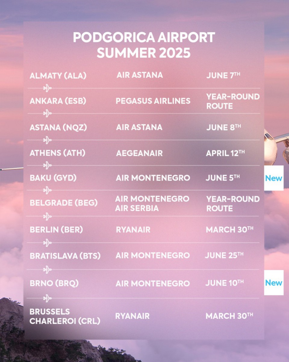 “Podsjećamo, ACG su tokom 2024. godine opslužili preko 2.800.000 putnika, od čega u Podgorici preko 1.750.000, a u Tivtu preko milion. Tokom 2025. godine očekujemo da promet putnika bude i iznad tri miliona”, saopšteno je iz te kompanije.