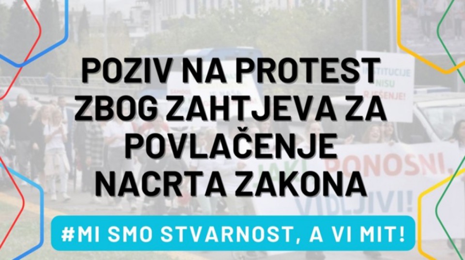 Protest organizuju organizacije Udruženje mladih sa hendikepom, Savez slijepih, Savez udruženja paraplegičara, Savez gluvih i nagluvih, nevladina organizacija (NVO) Mozaik, Udruženje za podršku osobama sa invaliditetom, Udruženje za afirmaciju i podršku ženama sa invaliditetom „Nova žena“.