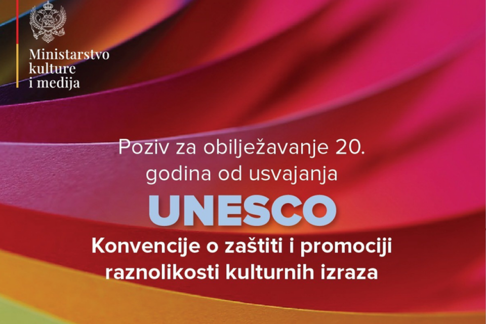 Ministarstvo kulture i medija poziva zainteresovane aktere iz oblasti kulture i kulturno-umjetničkog stvaralaštva, da pošalju svoje prijedloge projekata, programa i aktivnosti za obilježavanje dvadesetogodišnjice usvajanja ove UNESCO Konvencije o zaštiti i promociji raznolikosti kulturnih izraza.